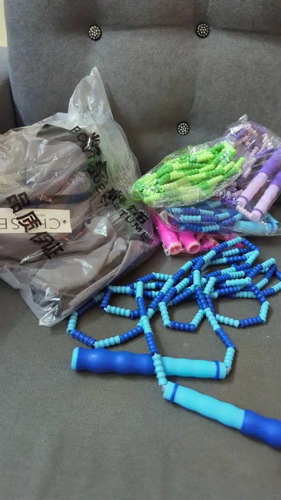 耐用塑料珠彩虹硬竹节串珠段儿童跳绳